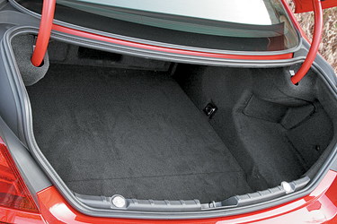 Объем багажника у купе (на фото) — 460 литров, а у кабриолета на 110 литров меньше, да и то с поднятой крышей | Под откидной эмблемой-ручкой прячется камера заднего вида — всегда чистая |
